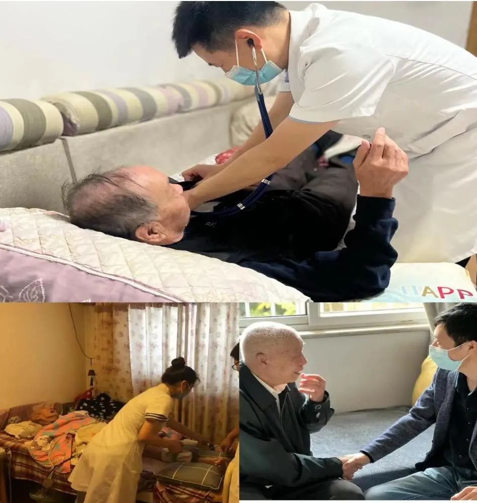 在92岁的姜希成家,北环医院院长助理、呼吸科主任王磊认真给老人做检查。姜希成参加过抗美援朝,精神矍铄,语言思路清晰,热情地跟大家分享自己怎样使用微信。医护人员写下常备治疗呼吸系统急症的用药,并反复嘱咐用药过程中的注意事项。在长安区居住的离休干部张振学已是百岁老人,心内科主治医师关切询问老人的生活起居情况,进行内科检查,对症开具专项用药。王桂兰老人居住养老院20余年,身坐轮椅行动不便,医护人员为老人听诊后发现肺部有痰鸣音,嘱咐陪护员尽快带老人到医院做进一步诊治。