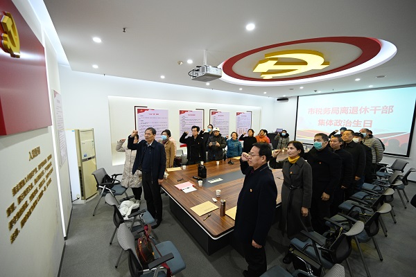在“党员活动中心”,向老同志们传达学习了党的十九届六中全会精神,通报了市局重点工作进展情况,进行了“学习党的十九届六中全会精神”测试,并为老同志们过集体政治生日。老同志们看着装有各自几十年前的入党申请书复印件的“政治生日贺卡”,兴奋激动不已,踊跃发表生日感言,面对党旗举起右拳,重温入党誓词,回忆入党初心,手捧“政治生日贺卡”争相留影。