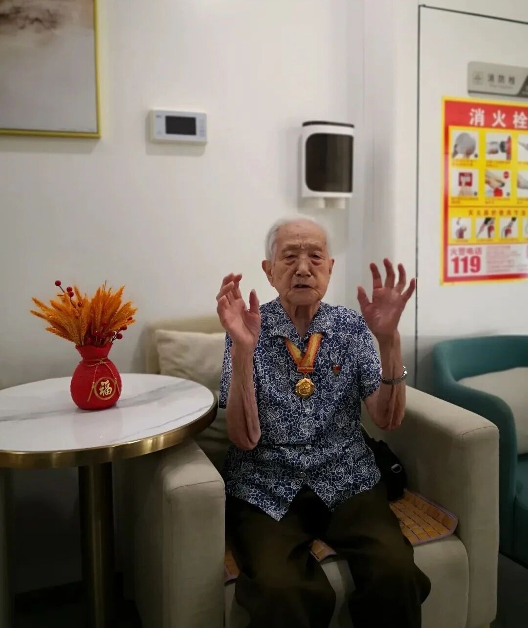 八月末的西安,秋意初露,暑热未消。在明德西路一家老年养护院里,今年99岁高龄的高铭老人精神矍铄,思路清晰。交谈间,她胸前那枚“中国人民抗日战争胜利80周年纪念章”格外醒目,在光线映衬下熠熠生辉。