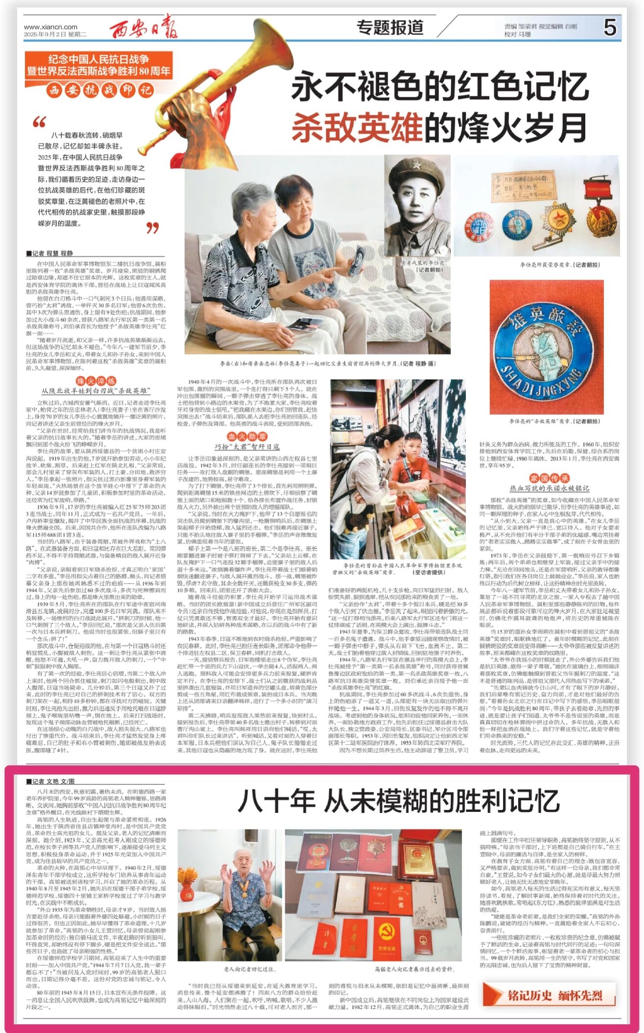 《西安日报》专题报道我市抗战时期离休干部高铭事迹