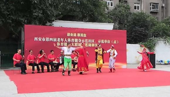 北院门街道桥梓口社区创建莲湖区老年人体育健身示范社区,组织离退休干部参加“迎全运惠民生”西安市第四届老年人健身体育示范区健身大联展活动,营造全民全运的浓厚氛围。