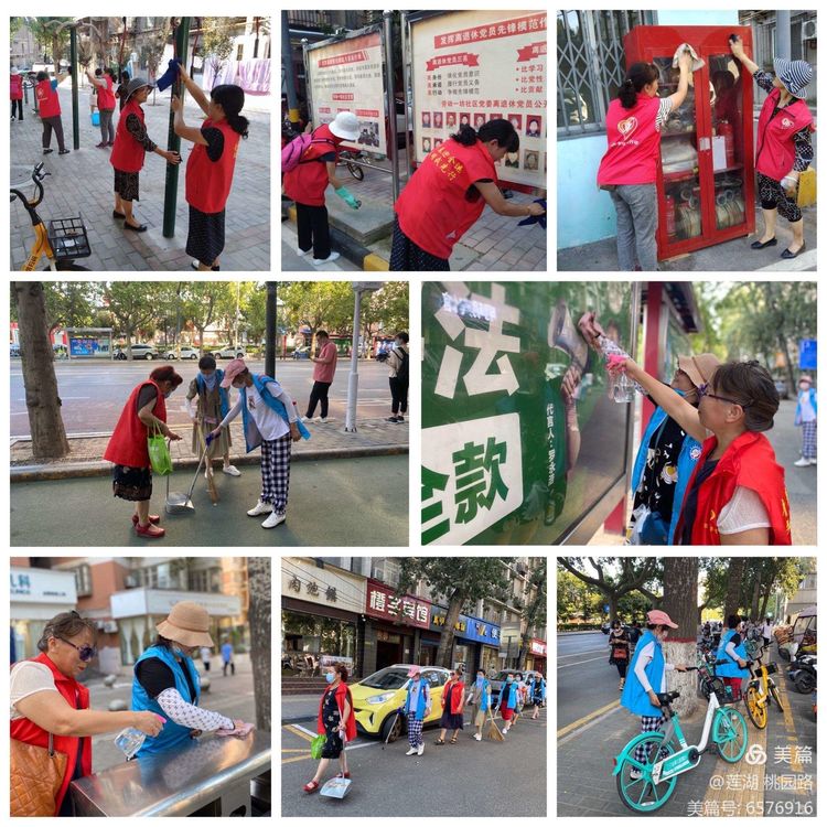 桃园路街道劳动一坊社区离退休干部开展“喜迎十四运,我文明、我行动、我为全运添光彩”主题志愿服务活动,上街头、进楼宇,打扫卫生,清理野广告、摆放共享单车,美化社区环境,建设文明街区。