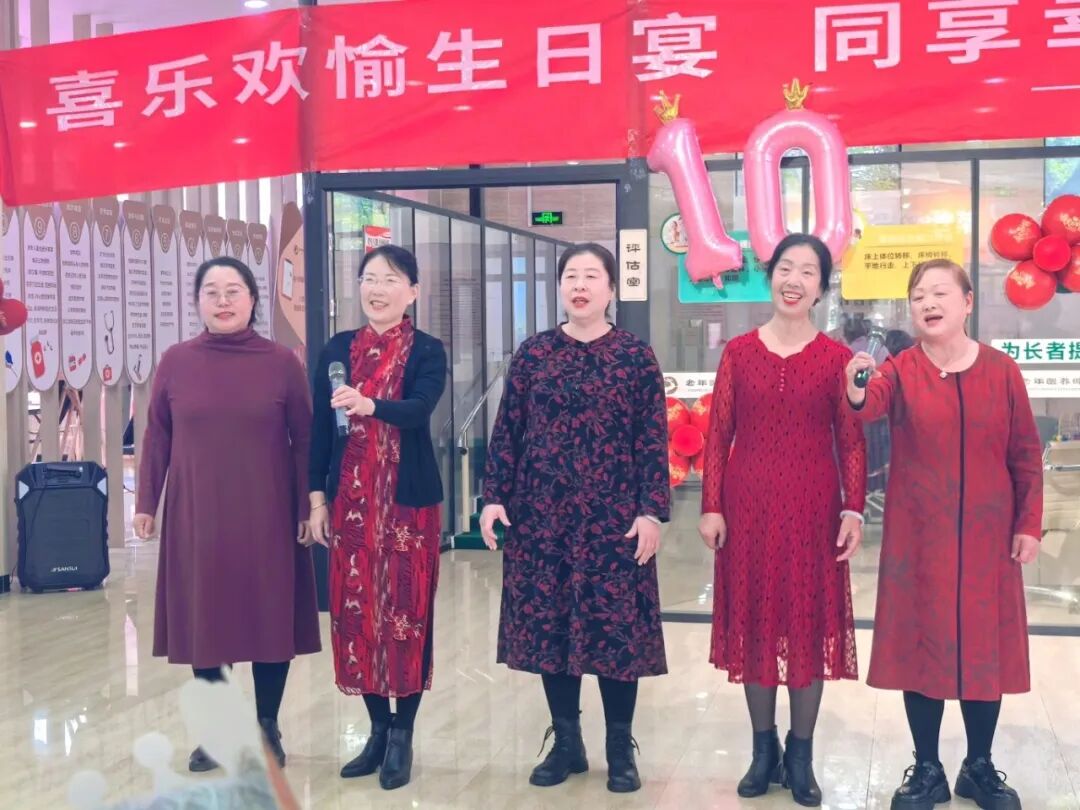 活动中,文艺节目和互动小游戏穿插进行,老年大学工作人员还特意带去了书画系师生的字、画、扇面作品,作为节日礼物送给老人。整场演出高潮迭起,台上台下互动频繁,许多长者情不自禁地跟着熟悉的旋律轻声哼唱,用手掌打着节拍,脸上洋溢着幸福的笑容。文艺表演结束后,活动进入了温馨感人的“集体生日会”环节。在《生日快乐》的悠扬乐曲声中,工作人员推上了精心准备的生日蛋糕。老年大学的学员代表与敬老院工作人员一同,邀请本月过生日的“寿星”长者来到台前,为他们戴上生日帽,老人们看着蛋糕上闪烁的烛光,脸上充满了惊喜与感动。