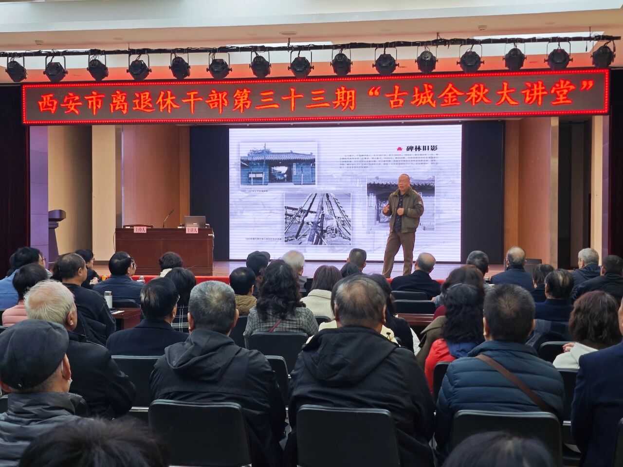 为了传承和弘扬中华优秀传统文化,丰富离退休干部精神文化生活,12月10日上午,西安市老干部活动中心举办“新境大开——藏在碑林里的国宝”专题讲座暨第三十三期“古城金秋大讲堂”,100余位离退休干部一同聆听。