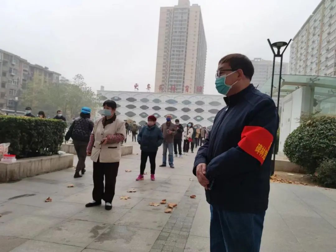 火车头广场核酸检测现场,老同志们不停地提醒着大家,保持一米距离,耐心地为居民解释着疫情防控政策。