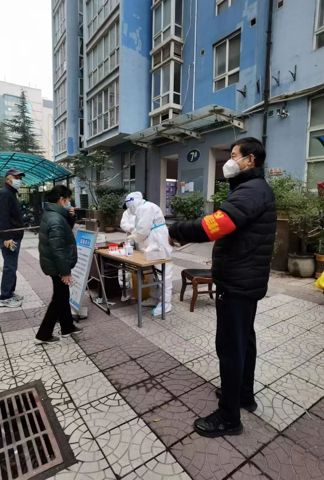 在三、四号高层、六、七号高层核酸点位现场,老同志们不仅参与门禁值守,还亲自承担了核酸检测扫码、维护秩序等工作,成为各项疫情防控工作的重要力量。