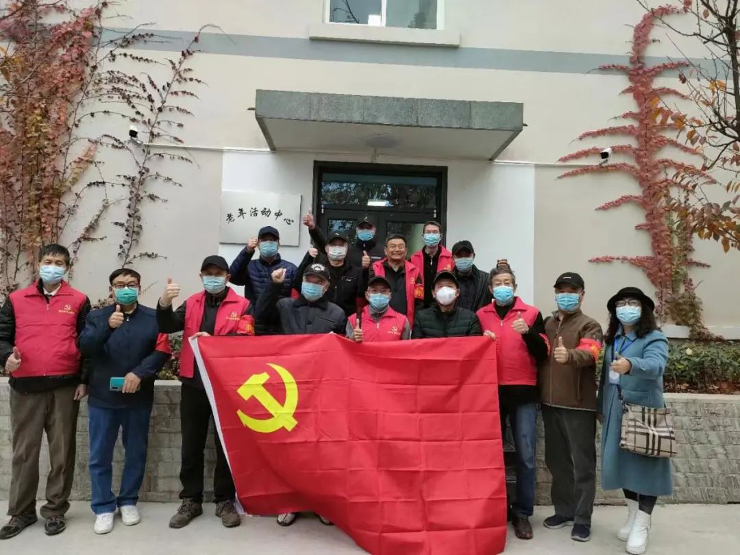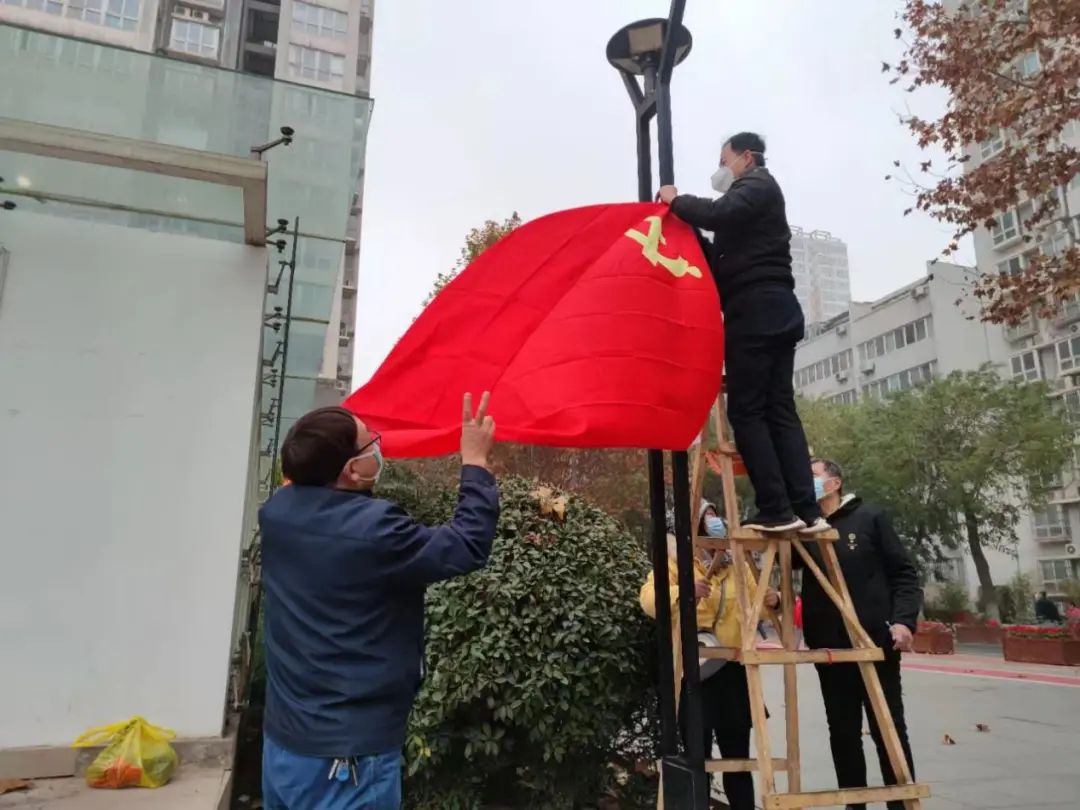 在火车头广场核酸检测现场和各个值守点位,老同志们亲手将鲜红的党旗挂起,核酸现场阴霾的天空中,一抹鲜亮的红色,让排队做核酸的居民感到格外安心温暖。