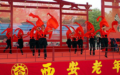 10月30日下午,西安老年大学“金秋十月文艺演出”在大明宫遗址公园群众大舞台隆重举行,上百名学员参加了演出。