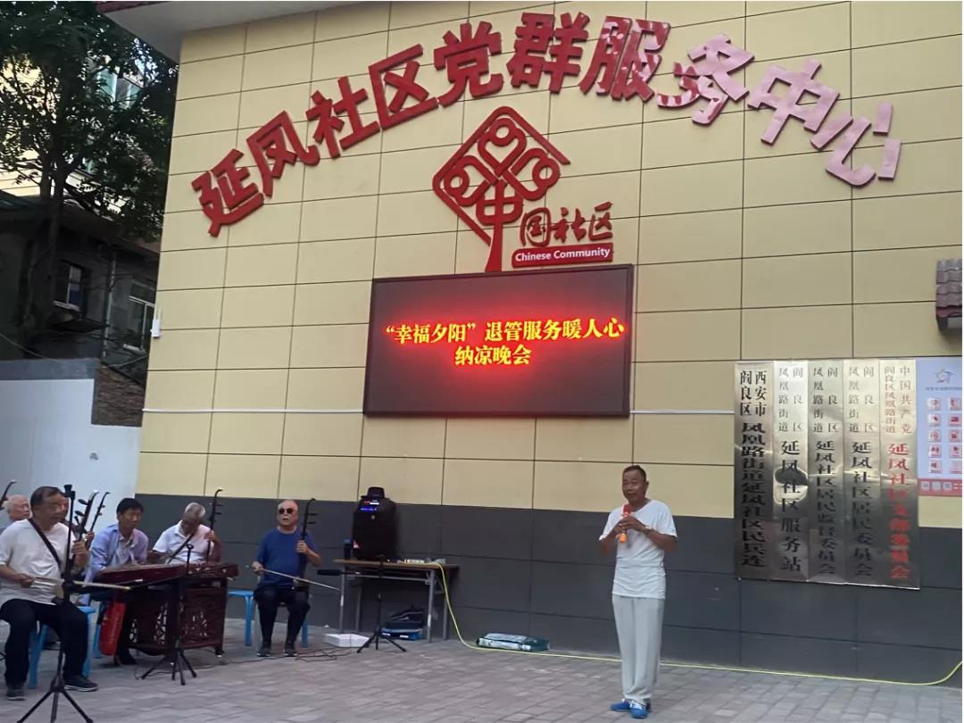 本次纳凉晚会中的才艺展示均由离退休人员精心策划并组织开展,30余名退休职工登台参与演出,所有节目均由老同志自编自导自演,他们通过秦腔、戏曲、舞蹈、独唱、乐器合奏等丰富多彩的表演形式,抒发了对美好生活的祝福和对社区发展的良好祝愿,赢得了大家的阵阵掌声。