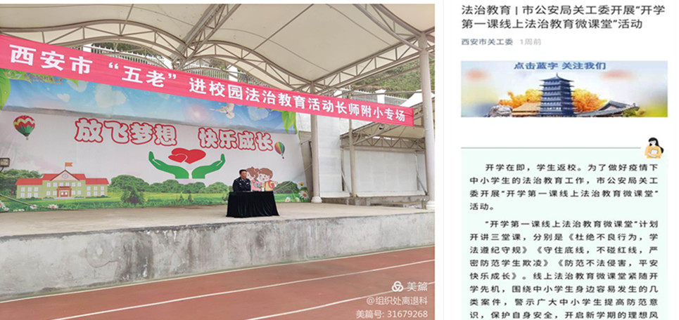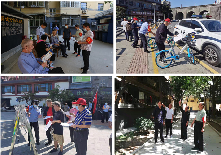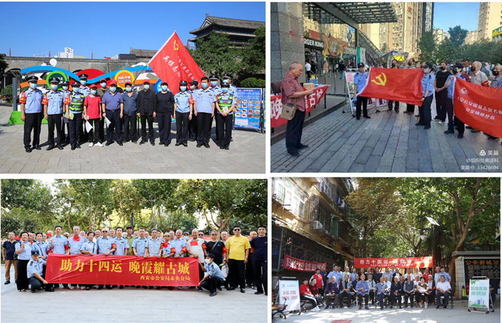 莲湖、碑林分局老干部志愿者和在职民警志愿者一道走上街头,通过发放宣传册、现场讲解等多种方式进行反电信诈骗、安全防护等宣讲,帮助居民安装“国家反诈中心APP”,并就与市民密切相关的文明养犬、“高空抛物”等政策法规进行宣传和解读;在公交车站,志愿者们引导乘车市民主动核验公交车健康码、有序安全乘车,对街头乱停乱放的共享单车进行有序摆放,引导市民共同参与志愿服务活动,自觉做城市文明的践行者,闪现的“小红帽”和“红袖标”,成为街头一道亮丽的风景线。新城分局老干部志愿者结合分局正在开展的“院落警长制”治理模式,自发组成小区志愿者巡逻队,开展志愿巡逻,积极排除风险隐患,守护居民安全,助力基层社会治理。未央分局以“全民全运同心同行”为主题,组织退休党员干部开展红歌快闪老年文体活动,引导老同志争当活力西安的践行者,营造了良好的体育赛事文化氛围。政治部老干部党支部依托市局关工委平台,组织“五老”成员,深入中小学校,开展普法宣传教育;同时适应疫情防控常态化特点,依托网络平台,举办“开学第一课”线上法制教育系列微课堂,当好青少年思想道德教育的辅导员,帮助青少年扣好人生“第一粒扣子”,助力下一代健康成长。