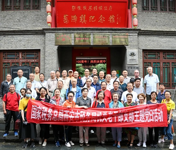 7月23日,西安市税务局机关离退休党员赴蓝田县葛牌镇参观红色教育基地,开展“学党史 守初心 铸信念”主题党日活动。