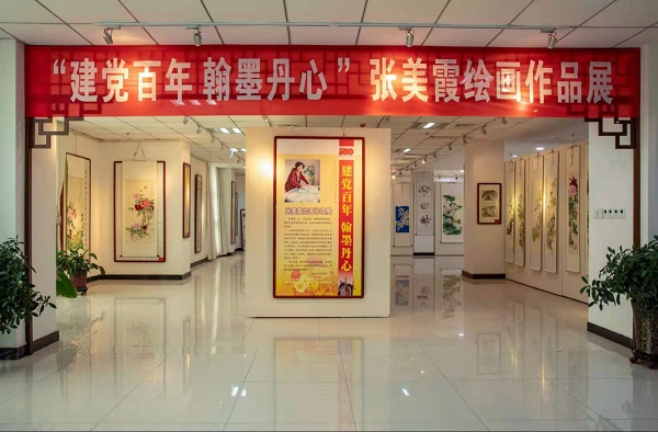 为庆祝建党100周年、喜迎十四运,5月23日,陕西省劳动模范、鄠邑区离退休党工委退休第七党支部书记张美霞“建党百年·翰墨丹心”个人绘画作品展在区文化馆开幕。