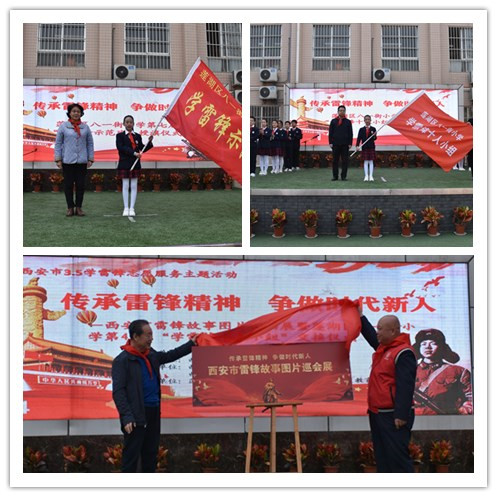 市关工委常务副主任兼秘书长辛远英为“学雷锋示范班”授旗,莲湖区教育局副书记曹美林为八一街小学“学雷锋十人小组”授旗;市慈善会会长朱智生和西安慈善网约车学雷锋志愿服务队队长陈新利为“传承雷锋精神争做时代新人”西安市雷锋故事图片巡回展揭幕。