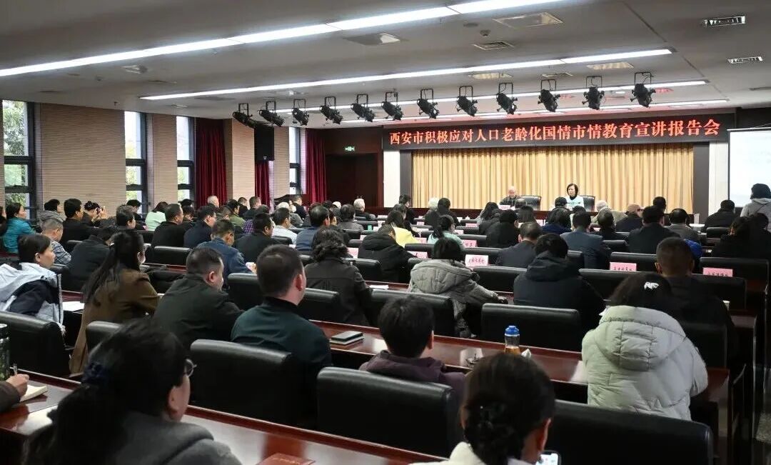 为深入贯彻落实积极应对人口老龄化国家战略,全面普及人口老龄化国情市情知识,12月22日,西安市委老干部局举办积极应对人口老龄化国情市情教育宣讲报告会,邀请西安建筑科技大学教授李从容授课。全市离退休干部代表、老干部工作部门负责人等120余人参加。