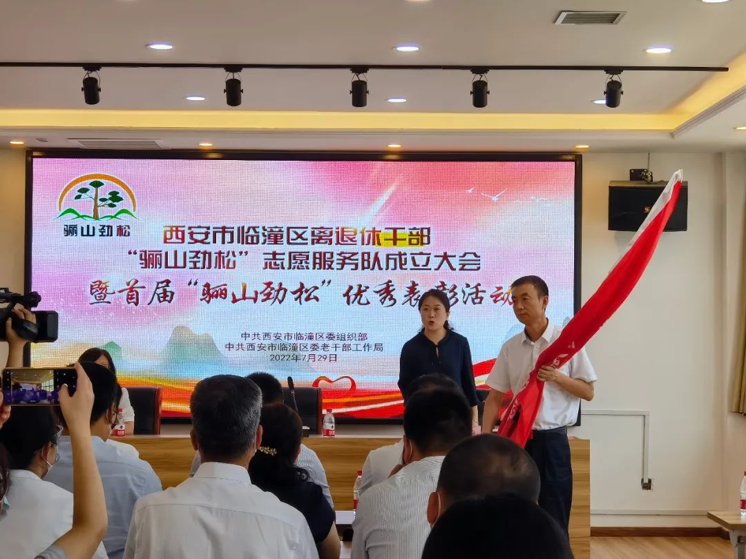 为推进离退休干部党建融入城市基层党建大格局,充分发挥老干部、老党员独特优势作用,7月29日,临潼区举办离退休干部“骊山劲松”志愿服务队成立大会暨首届“骊山劲松”优秀表彰活动。市委老干部局,临潼区委组织部、区委宣传部,骊山、秦陵、斜口、行者、代王、新丰街道相关领导和有关社区党组织书记、离退休干部志愿者代表50余人参加。