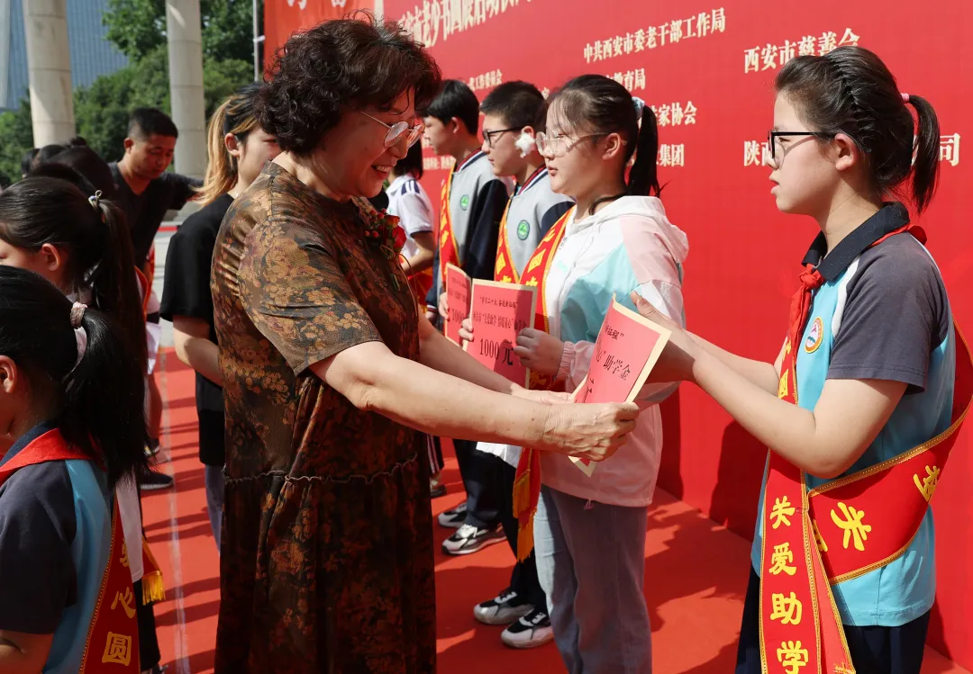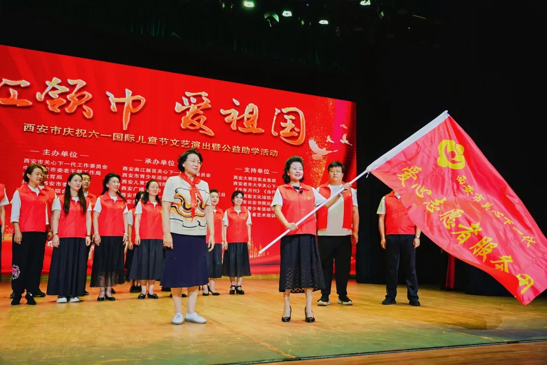 向西安市关心下一代爱心志愿者服务团授旗