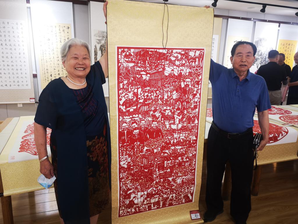 退休老党员姜儒麒剪纸作品入选本次展览,心情激动地说:“我们退休老年人要继续发挥特长,奉献余热,继续创作更好的作品回报社会,永远跟党走。”年过九旬的退休干部周宏兴说道:“我退休了,岁月不饶人,如今年逾九旬,在这里,我祝福祖国繁荣昌盛,全民上下皆幸福!”