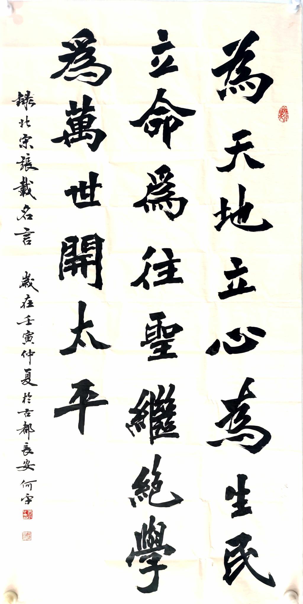 在学习书画过程中,自己积极参加市老干部活动中心书画学会临时党支部的各类活动,如写春联送福字、书法进校园、进社区、文化下乡以及慈善义卖、捐赠等,为传承中华民族优秀传统文化、弘扬正能量奉献自己的微薄之力。自己既得到了历练,也从中收获了快乐。