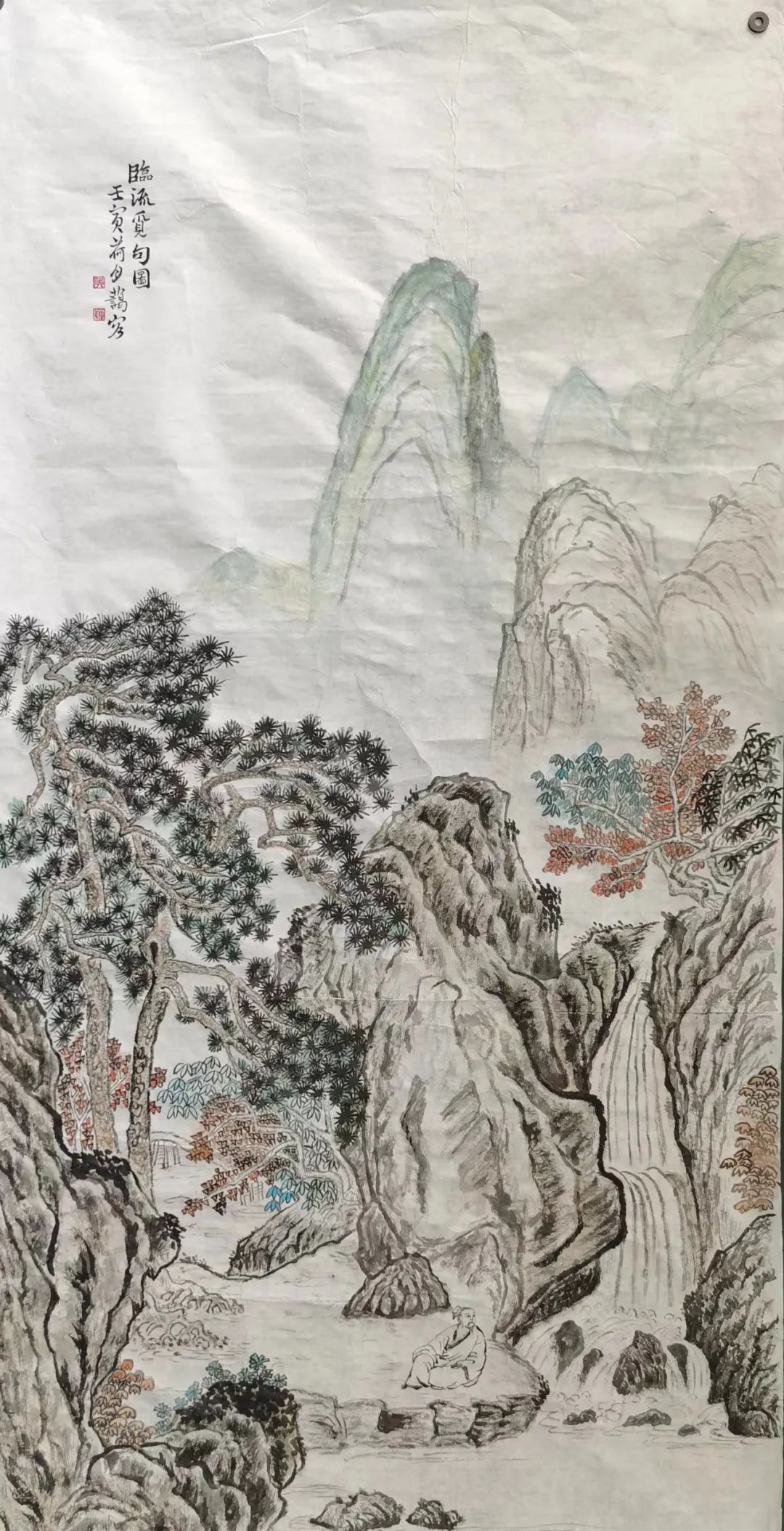 作品名称:临流觅句图 作者:侯蔼容 莲湖区老年大学学员