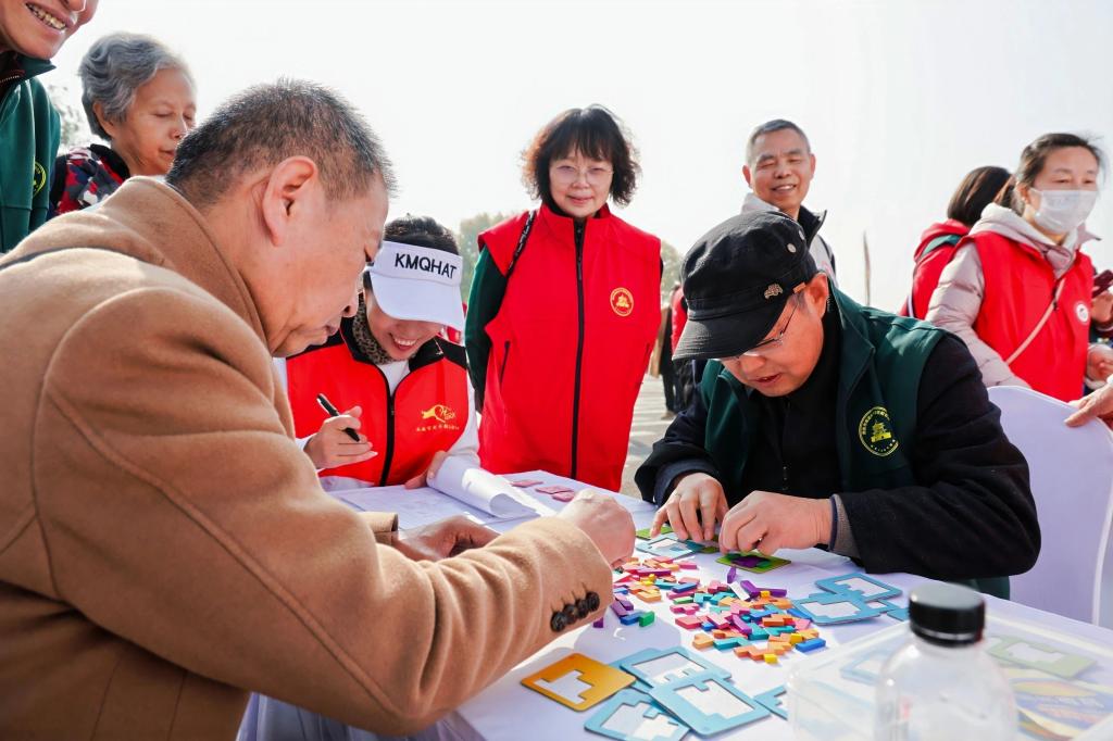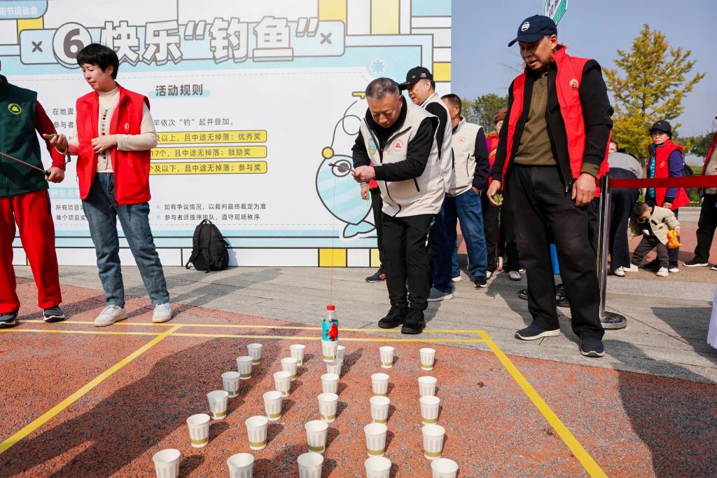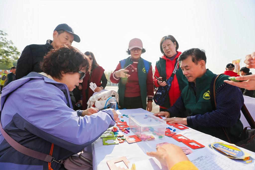 运动会设集体健步走和沙包投准、趣味保龄球、套圈夺宝、乾坤小挪移、仿古投壶、快乐“钓鱼”、解谜空间、智慧拼图等8个趣味项目。来自市直各单位、各区县的600余名老干部以健康活力的方式共庆重阳佳节。