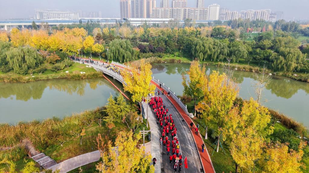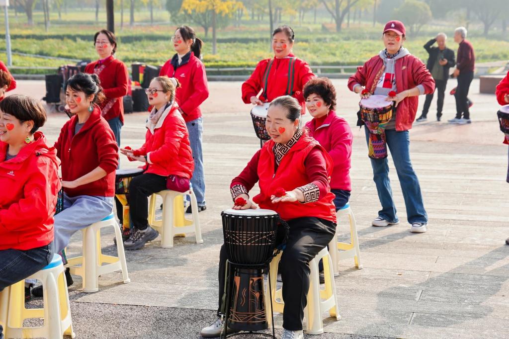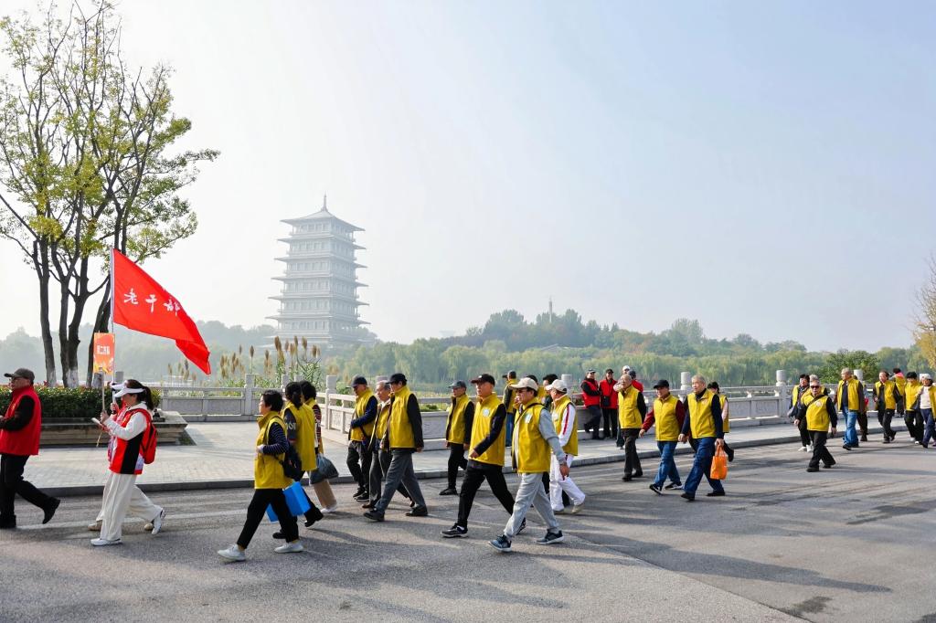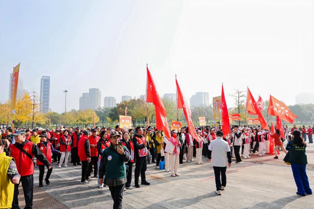 活动伊始,一场环绕世博园的健步走活动率先点燃了现场热情。在引导员的带领下,老同志们精神抖擞,迈开矫健的步伐,神采奕奕地踏上步道,队伍宛如一条流动的彩带,穿梭于世博园秋日美景之间,形成了一道亮丽的风景线。老同志边走边聊,不时驻足用手机记录下身边的美景,世博园里洒满了轻松愉快的欢声笑语。