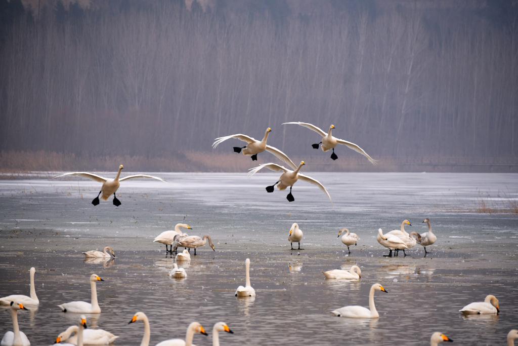 每在冬日来临,位于山西省的平陆县的黄河边,还有河南省三门峡市的天鹅湖,来自于西伯利亚的大天鹅在这里过冬,春节过后,它们便成群结队地飞离这里。