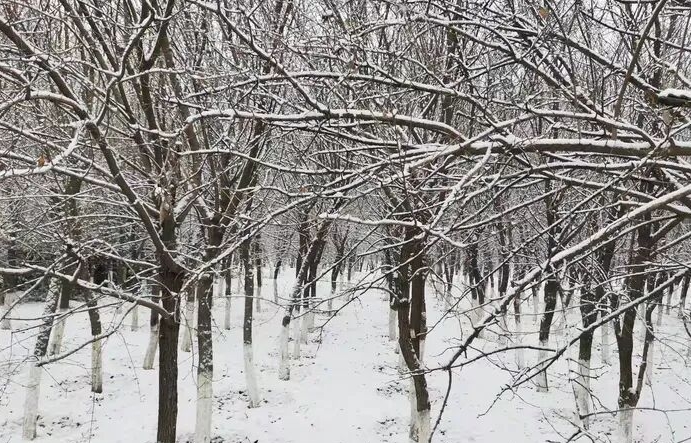 游人比刚才明显多了一些,雪地上已经留下了无数的或深或浅的脚印。前面的一对男女穿着漂亮明快的冲锋衣,在雪地上快速地奔跑着,口中和鼻子里冒出一股股热气,又迅速地消失在寒冷的空中。一个中年男人扶着的应该是他的母亲,虽然男子不停地要把母亲头上的帽子给母亲戴上去,可母亲又一次次取了下来,“这么多年没有看过这么大的雪了。小时候老家的雪就这么大!”一个年轻的夫妻带着他们的孩子也从我的身边走过,看孩子的模样,也就三岁左右,还走得不稳,也在雪地上歪歪扭扭地伸出双手抓着雪玩。雪没有抓住,便滚到雪地上去了。母亲正准备去扶,小家伙又战战兢兢地站了起来,帽子上、脸上、外套上都沾满了雪。我看着小家伙可爱的模样,猛然想到了我的小外孙,忍不住地给他打了一个招呼,谁知小家伙也给我摆了摆手。在离杜陵不远处,我停下了脚步,静静地看着眼前飞舞、盘旋着的雪花,童心也在我心中荡漾。我伸出双手,轻轻地接着在我眼前飘舞着的这些可爱的小精灵。一片,两片……很快这些雪花就在我的手心融化为一滴滴亮晶晶的小水珠。我又伸出手来,继续接着,化着。可能是雪花也看出了我喜欢她的心思,更是卖力地在我的眼前“表演”着,并和我捉起了迷藏。我看着前面,她躲到了我的后面;我双手想捉到她,她却躲到了我的头发里,甚至有几片竟然钻到了我的脖子里,让我不由得感受到一阵阵的激灵。