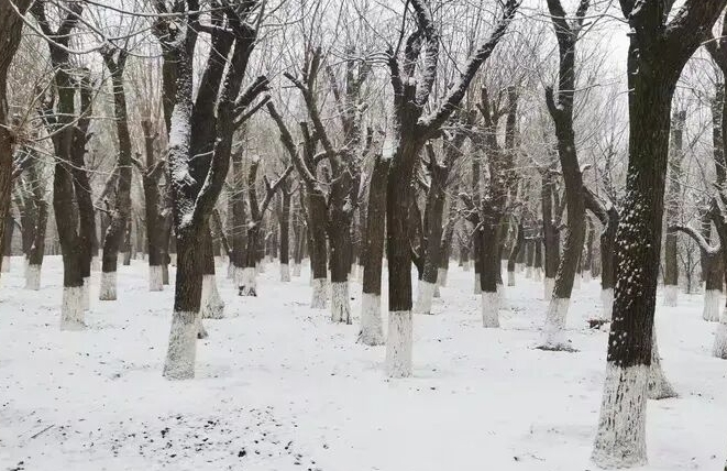 雪中的杜陵果然不负我愿。当我赶到这里的时候,眼前已是一片银白的世界。树上、地上,甚至连浩瀚的天空也仿佛像下了雪似的,变得银白。